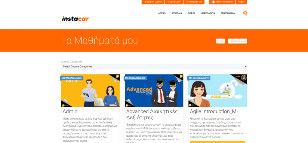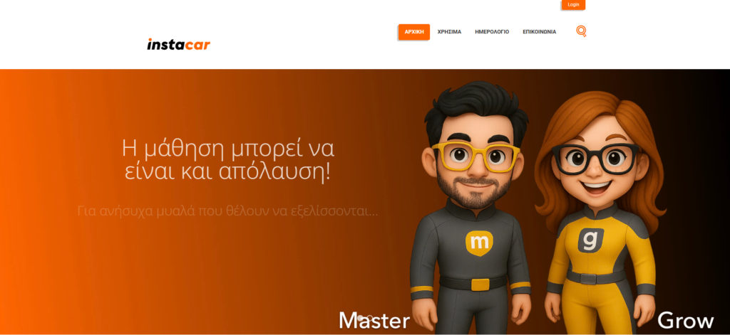 Καλώς ήρθατε στην πλατφόρμα eLearning 1. Κάντε κλικ στο “Login” στο μπλε Μενού επάνω δεξιά 2. Εισάγετε το “Ψευδώνυμο” ή την “Ηλεκτρονική σας διεύθυνση (email)” Βάλτε το συνθηματικό σας (password) Κάντε κλικ στο “Login” 3. Τώρα βρίσκεστε μέσα στον λογαριασμό σας και μπορείτε να κάνετε κλικ στα μαθήματα σας για να τα δείτε και να ξεκινήσετε!